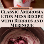 Looking to impress your guests or yourself? Try serving the Ambrosia Eton Mess Recipe in clear mason jars or vintage tea cups for a charming touch. Alternatively, layer it in a large trifle bowl for a communal dish that guests can dive into, making sure every scoop has that perfect mix of cream, fruit, and crunch.