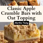 Delicious homemade Apple Crumble Bars featuring a buttery base, tender apple filling, and a crunchy oat crumble topping. Perfectly balanced sweet and tart flavors with cinnamon and nutmeg spice, served best warm with ice cream and salted caramel sauce.