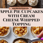 Delightful Apple Pie Cupcakes featuring tender spiced apple filling baked into moist cinnamon nutmeg cupcakes, topped with a luscious stabilized whipped cream swirl. A perfect fusion of classic apple pie flavors and individual cupcake ease, ideal for gatherings or cozy treat moments.
