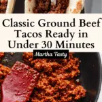 These Best Ever Ground Beef Tacos are a delicious and easy-to-make meal featuring seasoned ground beef simmered in tomato sauce and beef broth, served on warm flour tortillas with your favorite toppings like shredded lettuce, cheese, tomatoes, sour cream, and avocado. Perfect for a quick weeknight dinner or casual gathering.