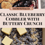 This old fashioned Blueberry Cobbler is an easy and delicious dessert featuring sweet, juicy blueberries coated with a crunchy, buttery batter. Perfectly baked to golden brown, it’s best served warm with a scoop of vanilla ice cream or whipped topping, making it a comforting treat using simple ingredients you likely already have on hand.