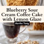 This Blueberry Sour Cream Coffee Cake is a luscious and moist dessert featuring a tender cake base enriched with sour cream, bursting with fresh blueberries, and topped with a crunchy cinnamon streusel. Finished with a tangy lemon glaze, it’s perfect for breakfast, brunch, or as a delightful treat with coffee or tea.