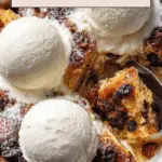 This classic Bread and Butter Pudding is a comforting dessert featuring slightly stale white bread soaked in a rich egg, milk, and cream mixture with sultanas, baked until golden and custardy. Finished with melted butter and icing sugar, it can be served with ice cream, custard, or cream for a deliciously warm treat.
