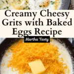 This Cheesy Grits with Eggs recipe offers a creamy, comforting dish perfect for breakfast or brunch. Stone-ground grits are simmered in flavorful broth, enriched with butter, cream cheese, and sharp cheddar, then topped with baked eggs for a hearty and satisfying meal.