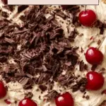The magic of this dessert is in the details. Whole maraschino cherries scattered on top add a burst of color and a sweet finish in every bite, while a dusting of chopped chocolate or toasted almonds enhances appeal and texture. Fresh mint leaves also make a lovely, fragrant garnish that complements the almond and cherry flavors.