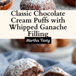 Carefully cut off the top third of each puff or make a hole in the bottom for filling. Remove any sticky webbings inside the shell for maximum creamy space. Fill a pastry bag with your whipped chocolate cream and pipe it generously inside each shell, topping with the reserved pastry cap for that classic look. A dusting of powdered sugar finishes them beautifully.
