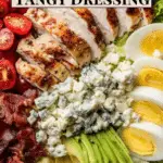 A fresh and hearty Cobb Salad featuring crisp greens, tender baked chicken, ripe avocado, cherry tomatoes, hard-boiled eggs, crispy bacon, and tangy blue cheese, all brought together with a zesty homemade dressing made from olive oil, red wine vinegar, and Dijon mustard.