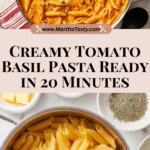 This creamy tomato basil pasta is a quick and comforting dish that combines tender penne pasta with a rich, flavorful sauce made from tomato sauce, heavy cream, garlic, and fresh basil. Finished with Parmesan cheese, it’s perfect for a satisfying weeknight dinner that can be ready in just 20 minutes.