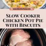 This Crock Pot Chicken Pot Pie recipe offers a comforting and easy way to enjoy the classic flavors of chicken pot pie without the fuss of making crust from scratch. Tender chicken breasts slow-cooked with creamy soup, mixed vegetables, and aromatic seasonings create a flavorful filling that’s perfectly complemented by flaky baked biscuits served on top. Ideal for a hassle-free family dinner, this recipe combines the convenience of a slow cooker with the satisfying warmth of a homemade pot pie.