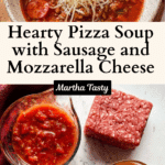 This Easy Pizza Soup is a comforting and hearty dish featuring ground beef or Italian sausage, pepperoni, and a rich blend of marinara sauce, fire-roasted tomatoes, and broth. Simmered to perfection in a Dutch oven and topped with melted mozzarella cheese, this soup delivers all the delicious flavors of pizza in a warm, satisfying bowl. Perfect served alongside garlic bread for a complete meal.