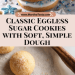 These Eggless Sugar Cookies are a quick and easy treat perfect for those with egg allergies or anyone out of eggs. With just 10 minutes of prep time and no need for chilling (unless making cut-outs), these soft, buttery cookies can be drop-formed or cut into fun shapes. They are ideal for decorating and icing for any occasion, delivering classic sugar cookie flavor without compromise.