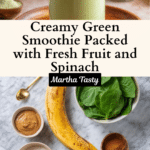 A nutrient-packed green smoothie blending frozen fruit, baby spinach, Greek yogurt, and almond butter into a creamy, energizing drink perfect for a healthy breakfast or snack.