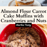 Fold in the grated carrot, dried cranberries or raisins, and chopped nuts. These add wonderful bursts of flavor, nutrition, and texture that make this Healthy Almond Flour Carrot Cake Muffins Recipe truly irresistible.
