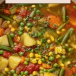 This easy homemade vegetable soup is a comforting and healthy meal made with fresh vegetables, herbs, and a savory vegetable broth. Perfect for chilly evenings, this recipe is far better than canned soups, with a delicious blend of carrots, celery, potatoes, green beans, corn, peas, and tomatoes simmered to tender perfection. Freeze leftovers to enjoy convenient, wholesome meals anytime.