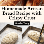 This Homemade Artisan Bread recipe delivers a deliciously crusty and chewy loaf with minimal effort. Made with simple ingredients like bread flour, yeast, salt, and water, this no-knead bread involves an easy mixing process, a long rise, and baking at high heat for the perfect golden crust. Ideal for sandwiches, toast, or alongside soups and salads, this classic artisan bread offers rich flavor and satisfying texture with versatile shaping and baking options.