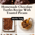 Homemade Chocolate Turtles are a delightful treat made with rich microwave caramel, crunchy toasted pecans, and smooth melted chocolate. This easy-to-make candy recipe combines the perfect blend of sweet and nutty flavors for a classic American dessert that can be made in under an hour.