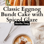 This Homemade Eggnog Bundt Cake is a festive and moist cake infused with classic holiday spices and creamy eggnog. Topped with a smooth eggnog glaze, this delightful dessert is perfect for seasonal celebrations and gatherings.