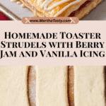 Homemade Toaster Strudels made with flaky puff pastry, filled with sweet berry jam, and topped with a smooth vanilla almond icing. These delicious pastries are easy to bake and perfect for a special breakfast or snack, offering a fresh alternative to store-bought versions.