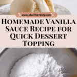This Homemade Vanilla Sauce Recipe pairs beautifully with a wide variety of desserts. Pour it over steaming apple crisp, sticky toffee pudding, or drape it generously over warm dumplings. It’s also delicious alongside fresh fruit like berries or poached pears, making the dish cozy and comforting.