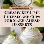 These Creamy Key Lime Cheesecake Cups capture the tangy, refreshing flavor of classic Key Lime Pie in convenient, individual servings. Perfect for parties or make-ahead treats, these no-bake cheesecake cups feature a buttery graham cracker crust, a smooth, zesty lime cream cheese filling, and optional garnishes like whipped cream and lime slices.