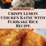 This Lemon Chicken Katsu with Furikake Rice is a delicious Japanese-inspired dish featuring crispy breaded chicken cutlets paired with tangy, savory lemon katsu sauce and perfectly seasoned furikake rice. Tender chicken breasts are lightly salted, breaded with panko, and shallow fried to golden perfection. The zesty lemon katsu sauce combines soy, garlic, ginger, and a hint of sweetness to complement the crunchy chicken. Served with warm steamed rice sprinkled with umami-rich furikake seasoning, this meal is a colorful and flavorful dinner perfect for family or entertaining.