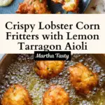 Crispy lobster corn fritters served with a tangy lemony tarragon aioli. This delightful summer appetizer features fresh corn kernels, tender lobster meat, and a perfectly seasoned dipping sauce, making it ideal for gatherings or a special treat.