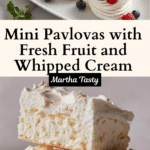 Mini Pavlovas are delicate, crisp-on-the-outside, marshmallowy-on-the-inside meringue nests topped with lightly sweetened whipped cream and fresh fruit. These individual pavlovas are perfect for elegant desserts or entertaining and provide a beautiful canvas for colorful berries, tropical fruits, and a dusting of icing sugar.