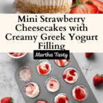 These Mini Strawberry Cheesecakes are a delightful dessert featuring a buttery graham cracker crust, creamy strawberry-infused cheesecake filling, and a fresh strawberry topping. Perfectly portioned in cupcake liners, they combine the tangy flavor of Greek yogurt with the sweetness of strawberries for a light yet indulgent treat.
