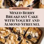 This Mixed Berry Breakfast Cake is a delightful and wholesome treat made with creamy plain yogurt and bursting with fresh or frozen mixed berries. Gluten-free and easy to prepare, this breakfast cake features a tender crumb topped with a buttery almond streusel, making it perfect for a satisfying morning or brunch option.