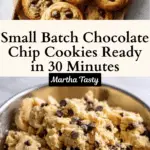 These One Bowl Small Batch Chocolate Chip Cookies are perfect for when you want a quick, easy, and delicious treat without making a large batch. Ready in just 25 minutes from start to finish, these soft and chewy cookies require no chilling and make about 8 large cookies. Perfectly portioned and packed with chocolate chips, they’re an ideal fix when your sweet tooth calls for a smaller indulgence.