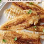This Pan Fried Sole with Lemon and Herbs recipe features delicate sole fillets seasoned and lightly floured, then pan-fried to a golden crisp. Served with fresh lemon wedges and parsley garnish, it’s a quick and elegant seafood dish perfect for a light and flavorful meal.