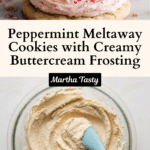 Delightfully tender and buttery Peppermint Meltaway Cookies with a light peppermint buttercream frosting, perfect for holiday gatherings or any time you crave a soft, melt-in-your-mouth sweet treat. These cookies feature a unique soft texture thanks to the addition of cornstarch, with a refreshing hint of peppermint and crushed candy cane topping for an extra festive touch.