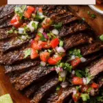 Perfectly Grilled Carne Asada with Cilantro and Citrus Recipe pairs beautifully with warm corn tortillas, creamy guacamole, grilled peppers, or a fresh pico de gallo. A side of Mexican rice or black beans rounds out the meal, adding comforting textures and flavors that complement the vibrant steak.