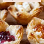 To freeze, it’s best to prepare the pastry cups by cutting and placing them in the muffin tin but without adding jam or cheese yet. Wrap tightly with plastic wrap and freeze for up to one month. When ready to use, thaw in the refrigerator, then add fillings and proceed with baking.