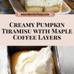 This easy Pumpkin Tiramisu is a creamy, no-bake fall dessert featuring layers of maple-coffee-dipped ladyfingers, spiced pumpkin filling, and whipped mascarpone topping. Assembled in a loaf pan and chilled overnight, it offers light, elegant slices perfect for Thanksgiving, Friendsgiving, or any festive autumn gathering.