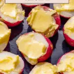 1. Prepare Radishes: Cut each radish in half lengthwise and arrange them flat side up on a serving plate.