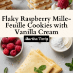 Delight in these elegant Raspberry Mille-Feuille Cookies featuring crisp layers of golden puff pastry, light and airy vanilla whipped cream, and fresh raspberries. Perfect as a refined dessert or tea-time treat, these bite-sized pastries offer a harmonious combination of flaky texture and fruity sweetness.