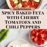 This Spicy Baked Feta, inspired by the classic Greek dish Mpougiourdi, combines creamy feta cheese with cherry tomatoes, green chili peppers, oregano, and olive oil. Baked to perfection, it makes a flavorful appetizer that’s perfect for dipping with crusty bread or crackers.