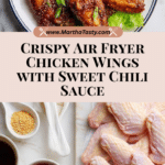 This Air Fryer Chicken Wings Recipe features crispy chicken wings coated in a flavorful flour mixture and tossed in a sweet and tangy sauce made from honey, brown sugar, sweet chili sauce, and soy sauce. Perfectly cooked in the air fryer for a healthier twist on classic wings, these are garnished with green onions and sesame seeds for an extra punch of flavor and texture.