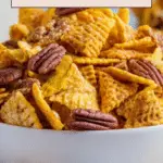 Sweet Bugle Party Mix is a deliciously crunchy and sweet snack mix featuring Bugles chips coated in a rich caramel-like sauce made from brown sugar, butter, and corn syrup, combined with toasted pecans and almonds. Baked to perfection for an hour with occasional tossing, it’s an irresistible treat perfect for parties or snacking.