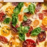 Fresh basil leaves scattered on top add an inviting burst of color and aroma that complements the caramelized sweetness beautifully. A light drizzle of high-quality olive oil or a sprinkle of freshly cracked pepper can also enhance each bite just before serving.